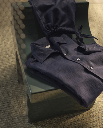 Frette's loungewear for men features the trusted craftsmanship and opulent comfort that all of our products are known for. Each pair of men's luxury pajamas is available in a range of sizes, from medium to extra-large, and includes classic collar and front pockets in a solid colour cotton fabric with contrast piping or pleasing yarn-dyed striped fabric. Choose from solid leather open back slippers or cotton slippers with stylish embroidery and genuine leather details. You'll spend the day in our men's loungewear relaxing in comfort and style.